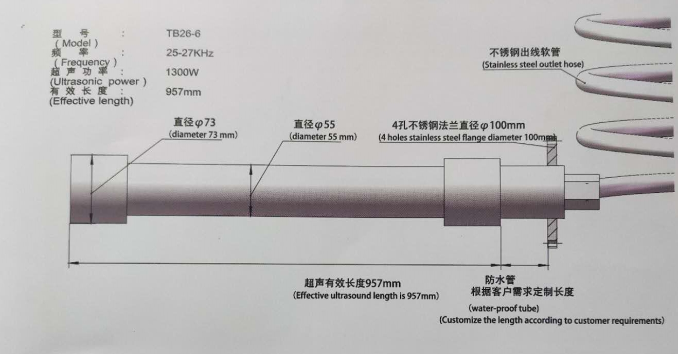 | TB26系列超聲棒設(shè)備及換能器技術(shù)參數(shù) | ||||||